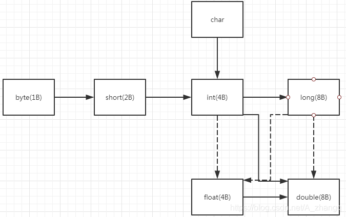 实线代表合法转换即无信息丢失的转换,虚线表示转换可能存在精度丢失问题。
